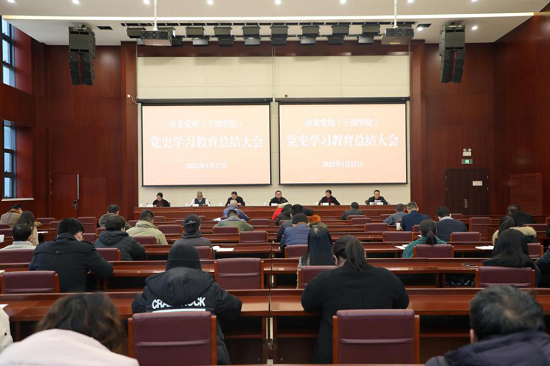 会议由校委委员陈伦盛主持会议,市委党校副校长、校党史学习教育领导小组副组长赵倩倩传达中央、省、市党史学习教育总结会议精神,副校长杨斌作了总结讲话。
