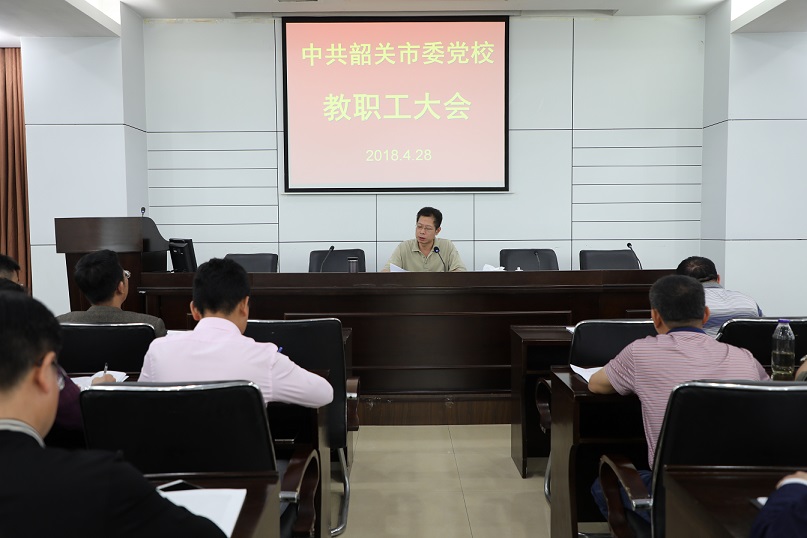 4月28日,市委党校在韶关市领导干部学习贯彻习近平总书记重要讲话精神专题研讨班结束后,迅速召开全校干部职工大会,会议由常务副校长高忠同志主持,学习贯彻市委莫高义书记、华旭初常委在研讨班上的主题讲话精神并作相关内容宣讲。