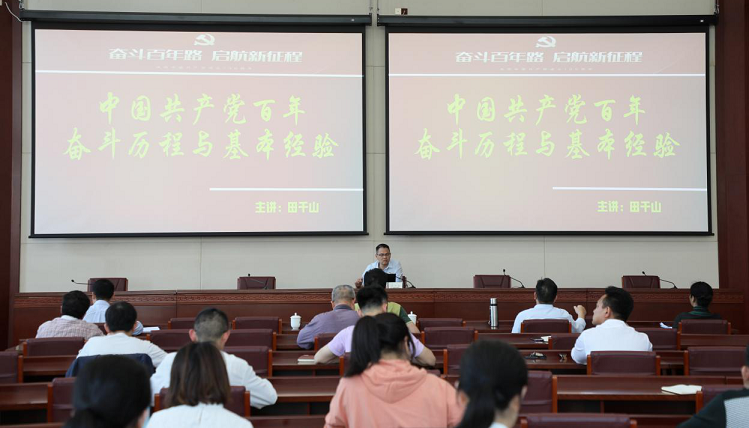 市委党校党史学习教育第一课,由我校党建教研室主任田千山副教授主讲。田千山以《中国共产党百年奋斗历程与基本经验》为主题,从梳理百年党史的基本脉络,分析了中国革命为什么成功的主要因素,总结出“始终坚持党的领导、继承与发展马克思主义、坚持以人民为中心、坚持党要管党从严治党”是中国共产党不断取得革命和建设伟大胜利的四条基本经验。