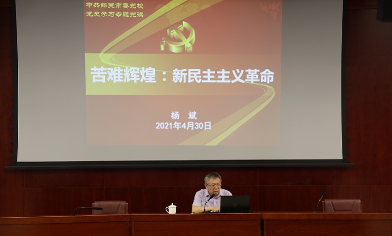 杨斌副校长以《苦难辉煌——新民主主义革命》为题,以新民主主义革命的重大历史事件为线索,系统梳理了中国新民主主义革命时期的主要脉络,引用了大量生动鲜活的史料,对我们党艰苦卓绝探索中国革命道路的峥嵘岁月进行了深刻解读。特别是结合犁铺头练兵、杨家寨会议、红军长征粤北突围等韶关红色历史,引起了与会人员的强烈共鸣,为党校教师更好地用活红色资源、讲好历史故事提供了指导和借鉴。