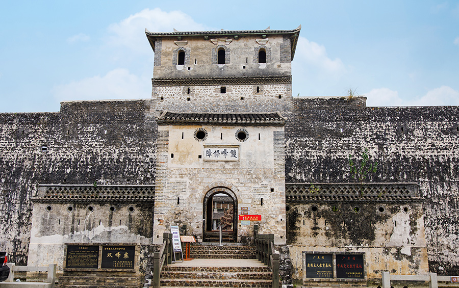 双峰寨坐落在仁化县城西的石塘镇,是清末当地村民集资修建的巨型寨堡。1928年3月,国民党第八路军第七师以两个团的兵力包围双峰寨,寨内守寨军民共计700余人,开展了震撼粤北的双峰寨保卫战,战斗坚持了8个多月,至11月11日突围,共牺牲军民400多人,其中有20多户全家捐躯。同年11月底,在中共广东省委第二次扩大会议通过的《纪念死难诸先烈》一文中称双峰寨保卫战是“广东农民暴动中最伟大的战斗”。