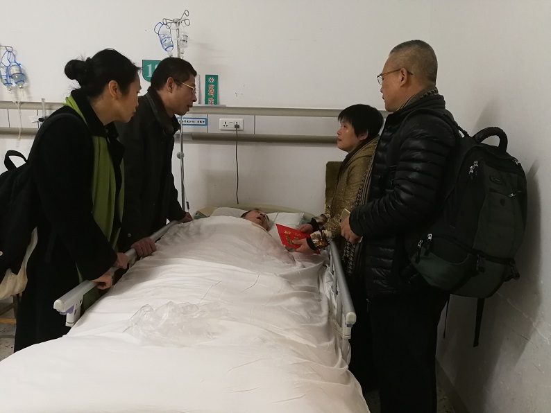 其后,校领导走访慰问我校困难老党员,代表校委会和校机关党委给他们送去慰问金和新春祝福。在走访慰问中,校领导亲切地与他们进行了交谈,详细地了解他们的身体状况及生活情况,并表示校机关党委将会继续关注他们的生活和家庭状况,尽最大能力为他们解决遇到的困难。被慰问的困难老党员十分感谢机关党委和校委会领导的关怀与帮助,表示会继续发挥余热、自力更生,积极为党的事业贡献最后一份力量。