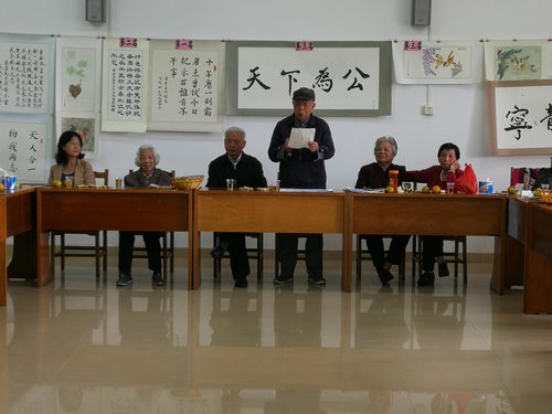常务副校长高忠同志代表市委党校,向离退休的老同志致以诚挚的节日问候和崇高的敬意。高忠表示,市委党校有今天的成就是老同志们艰苦奋斗的结果,我们也不会忘记老同志们的付出,并且心怀感恩。94岁的离休同志温则厚也在座谈会上代表老同志发表了感言。接着,高忠副校长和胡韶斌副校长为书画和摄影作品获奖的老同志进行了颁奖,并与老同志们一起演唱了《没有共产党就没有新中国》和《歌唱祖国》。