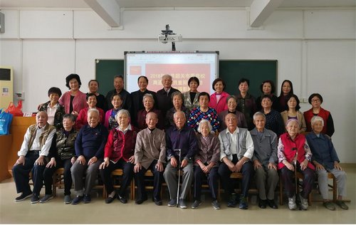 (校领导与老同志们一同高歌)