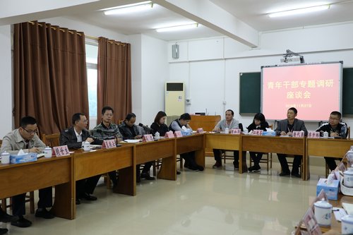 2018年11月27日下午,受韶关市委常委、组织部长肖展欣的委托,韶关市委组织部常务副部长蓝振云率领市委组织部相关科室负责人看望了在读的韶关市委党校2018年中青一班部分学员,并召开青年干部调研座谈会,倾听学员心声建议,祝愿大家学有所成,建功立业,成就梦想。