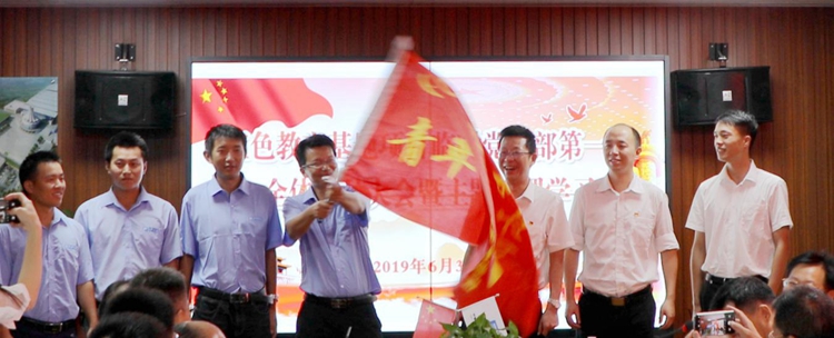 市委党校副校长胡韶斌给“青年突击队”代表授旗