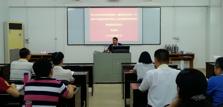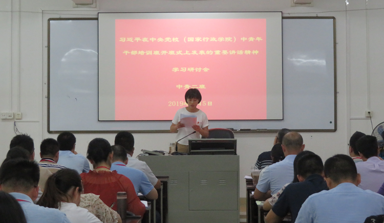 2019年9月5日下午,韶关市委党校通过编印学习资料、开展组织生活会和分组交流学习体会等方式,组织主体班学员学习领会习近平在中央党校(国家行政学院)中青年干部培训班开班式上发表的重要讲话精神。