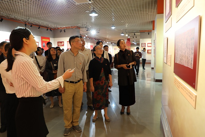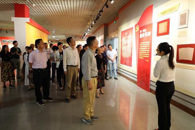 校委会班子全体成员、全校在职党员干部职工约50人参观展览。