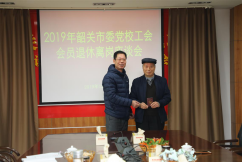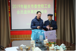12月25日上午,2019年韶关市委党校新退休离岗人员座谈会在综合楼404会议室举行。常务副校长高忠出席,并为退休离岗人员高军分、丁玉苹颁发退休证和纪念品。