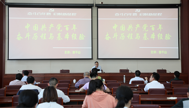 市委党校党史学习教育第一课,由我校党建教研室主任田千山副教授主讲。田千山以《中国共产党百年奋斗历程与基本经验》为主题,从梳理百年党史的基本脉络,分析了中国革命为什么成功的主要因素,总结出“始终坚持党的领导、继承与发展马克思主义、坚持以人民为中心、坚持党要管党从严治党”是中国共产党不断取得革命和建设伟大胜利的四条基本经验。