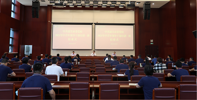 6月4日上午,中共韶关市委党校2021年中青年领导干部培训一班在丹霞教学楼209学术报告厅举行结业仪式,市委党校常务副校长高忠、副校长杨斌出席结业式。