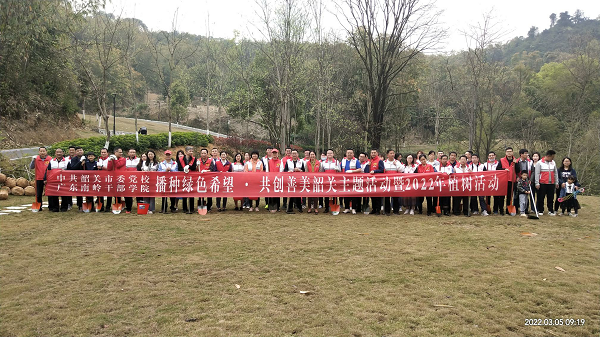 阳春三月,万物复苏,正是播种希望的季节。在植树节即将到来之际,2022年3月5日,中共韶关市委党校、广东南岭干部学院的全体党员,开展了以“播种绿色希望·共创善美韶关”为主题的爱绿护绿植树志愿活动。