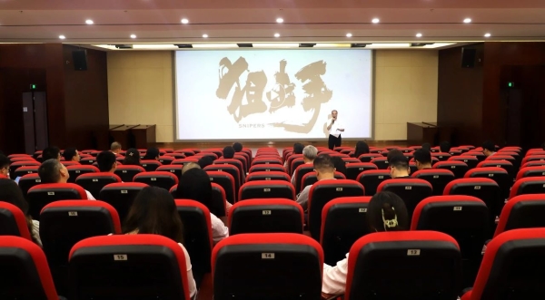 庆祝大会在雄壮的《国际歌》中降下帷幕。随后,全体参会人员集体观看爱国主义电影《狙击手》,接受爱国主义精神的洗礼。雷能福在观影前对《狙击手》作了简要介绍,该片以抗美援朝战争中的“冷枪冷炮运动”为背景,通过一段中国人民志愿军狙击小队与美军狙击队之间的殊死对决,展现了朝鲜战场上志愿军战士不畏艰险、敢于取胜的英雄故事和可歌可泣的革命精神。