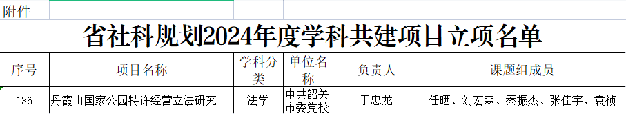近日,广东省哲学社会科学规划2024年度学科共建项目立项名单正式发布。我校生态文明教研部副教授于忠龙主持的《丹霞山国家公园特许经营立法研究》正式获批立项,实现了校(院)在省部级课题新的突破。