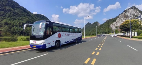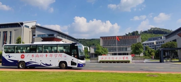 近日,广东南岭干部学院大巴车焕新登场。简洁大方、醒目美观的学院标识,既便于学员乘车外出培训,也是我院校园文化“流动式”宣传新元素。