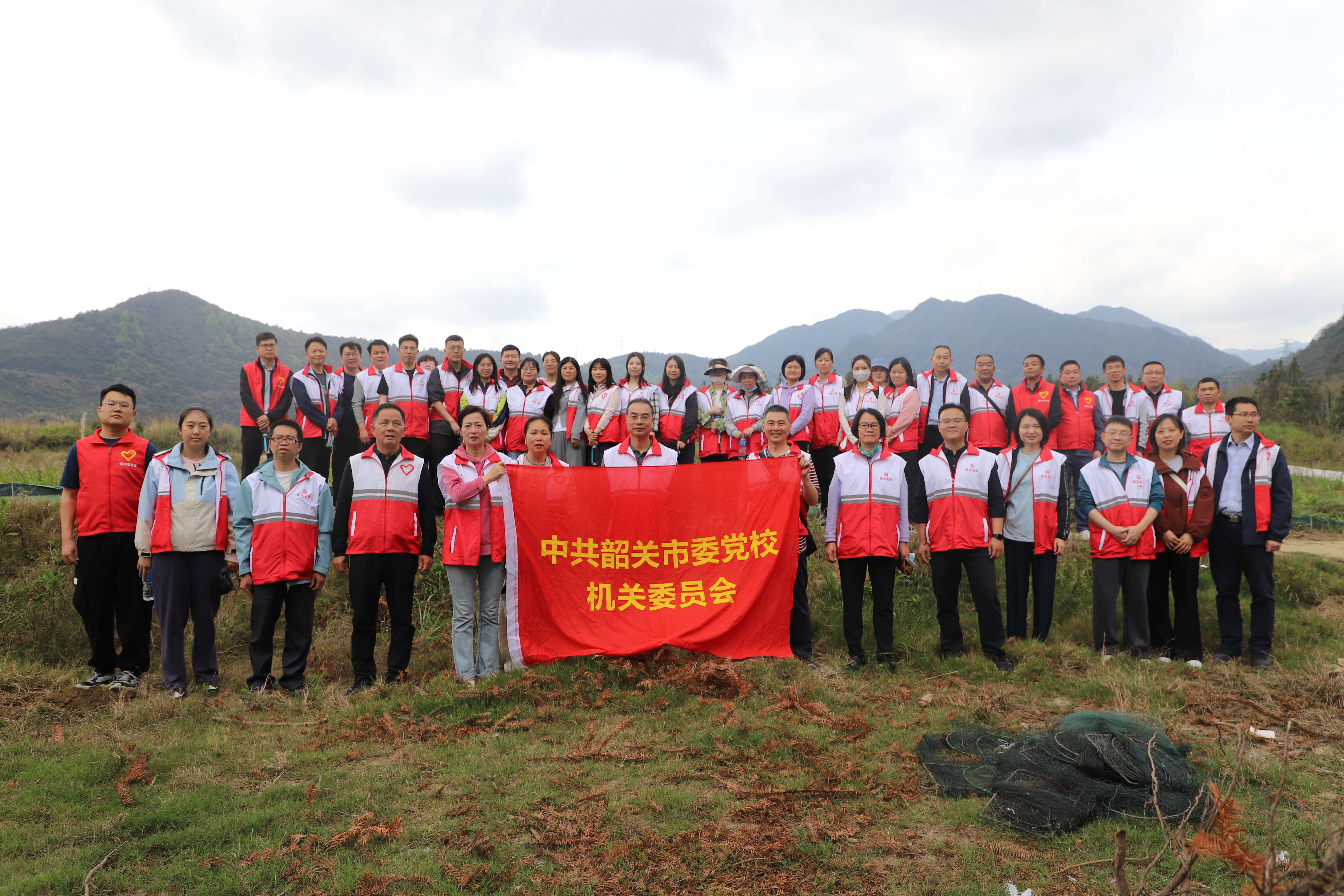 为深入贯彻习近平生态文明思想,全面落实绿美韶关生态建设工作部署,以党建红引领生态绿,2026年3月17日,中共韶关市委党校、广东南岭干部学院组织全体教职工,赴乳源瑶族自治县东坪镇梯下村开展“骏马奔腾启新程?绿美韶关添新绿”主题党日植树活动,常务副校(院)长雷能福带领全体校(院)教职工,与乳源县委党校,东坪镇党委、驻镇工作队及梯下村委等有关人员参加活动,共同在西京古道梯云岭沿线栽种桃树苗,为瑶乡大地播撒新绿,以实际行动投身绿美韶关生态建设,为韶关高质量发展增绿添彩。
