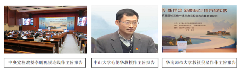 开幕式结束后,中共中央党校经济学部教授、博士生导师、政治经济学教研室主任李鹏,中山大学区域开放与合作研究院院长、港澳珠江三角洲研究中心教授、博士生导师毛艳华,华南师范大学政治与公共管理学院教授、博士生导师倪星分别作主旨报告。当天下午,与会学者围绕论坛主题,分组进行热烈而深入的学术交流研讨,在党建引领发展、经济发展的经验模式、社会治理的有益探索、文化建设的交流互鉴等方面取得了较为丰硕的成果。会议期间,论坛共收到来自“联盟”内13个地市党校专家提交的83篇参会论文。本次论坛确定了第六届“长三角--珠三角党校智库合作联盟论坛”由中共苏州市委党校承办。
