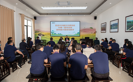 本次现场教学为期一天,授课形式包含专题授课、实地参观等。上午,中青一班学员抵达洛阳镇茶体验馆后,听取了洛阳镇党委书记马振球关于当地绿色资源保护、利用与开发情况的专题讲座。