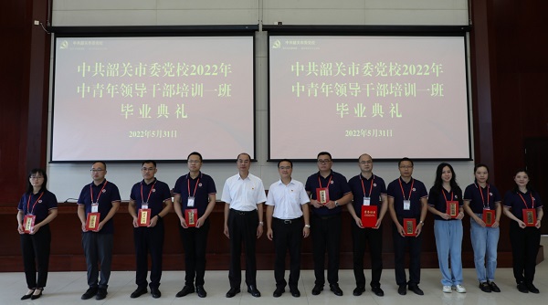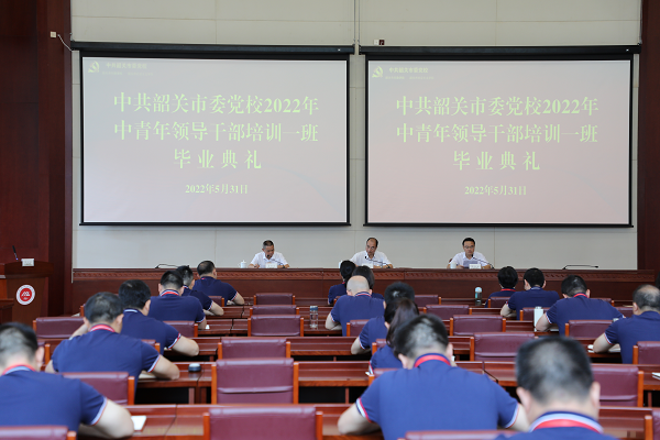 5月31日上午,中共韶关市委党校2022年中青年领导干部培训班一班在丹霞教学楼209学术报告厅举行毕业典礼。市委党校、广东南岭干部学院常务副校(院)长雷能福,广东南岭干部学院副院长陈伦盛出席毕业典礼。