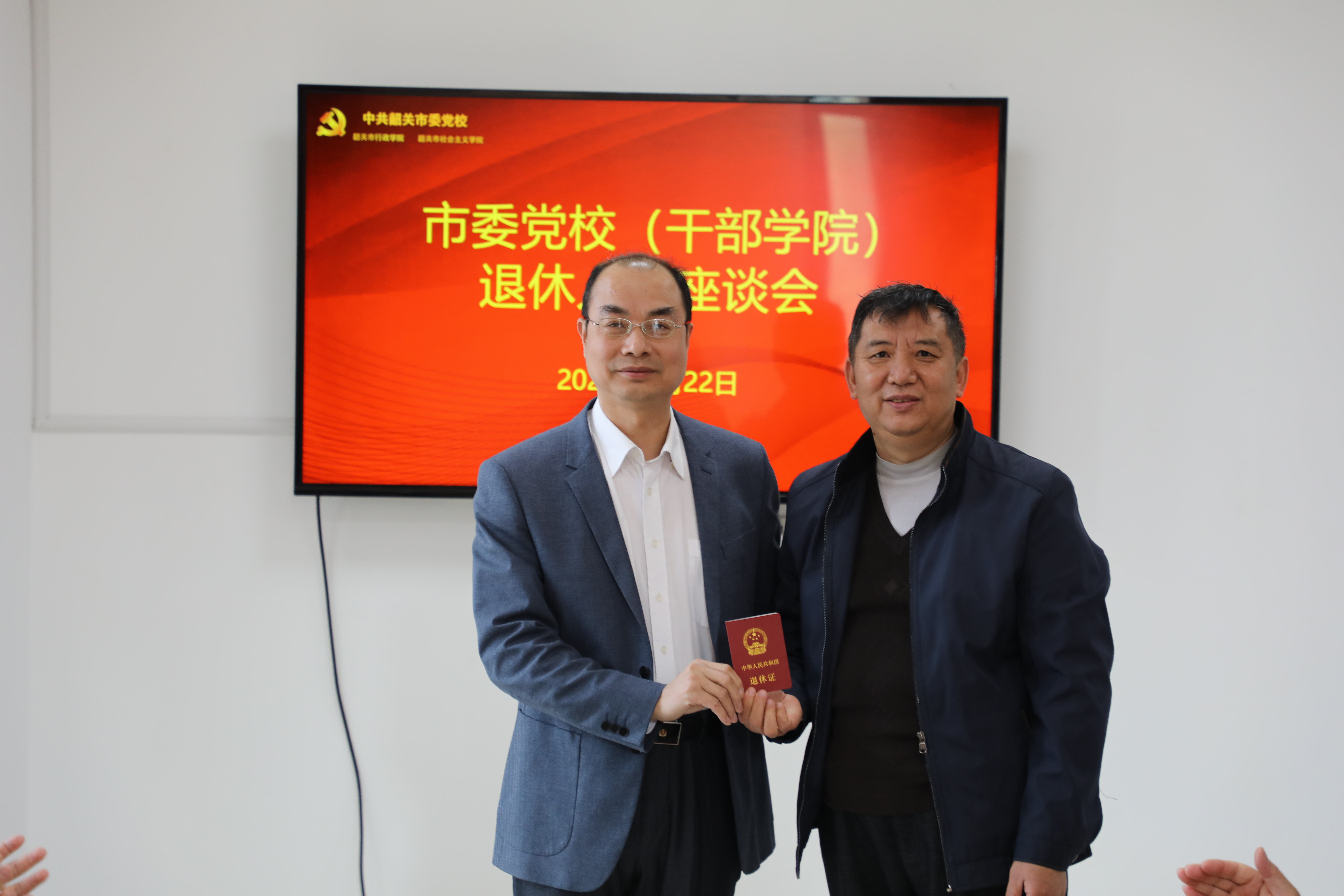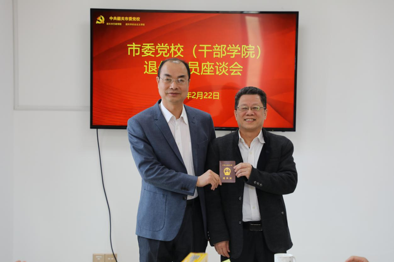 2023年2月22日,在图书楼423会议室举行了一场温馨而简朴的退休欢送座谈会。常务副校(院)长雷能福,干部学院副院长陈雪、陈伦盛及部分职工代表齐聚一堂,欢送尹伟强、陈春庆两位同志光荣退休。会议由工会主席黄永雄主持。