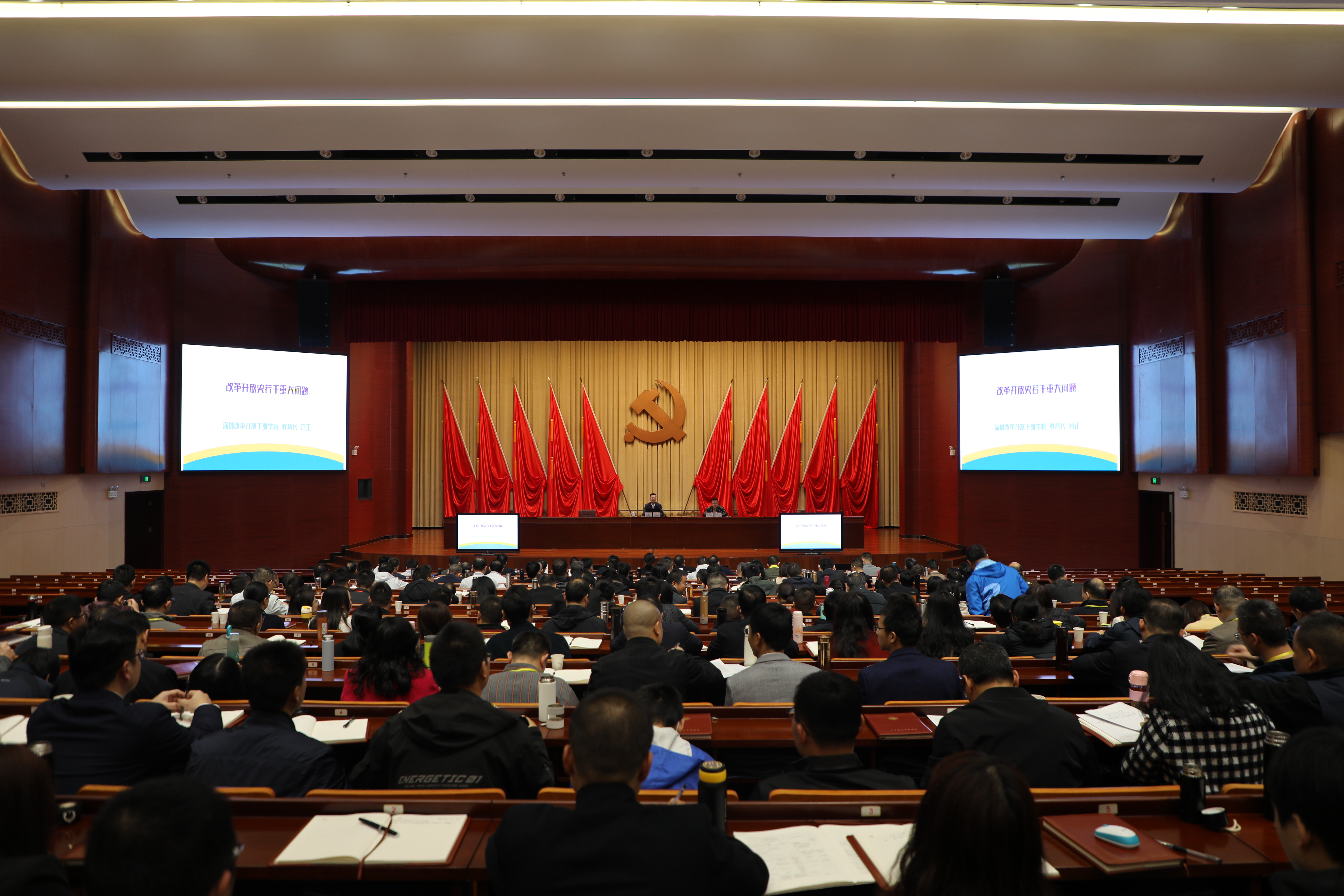 来自县处级干部任职培训和进修学习班、中青年领导干部培训一班、科级干部任职培训和进修学习班以及全体专兼职教师共200多人聆听了报告。
