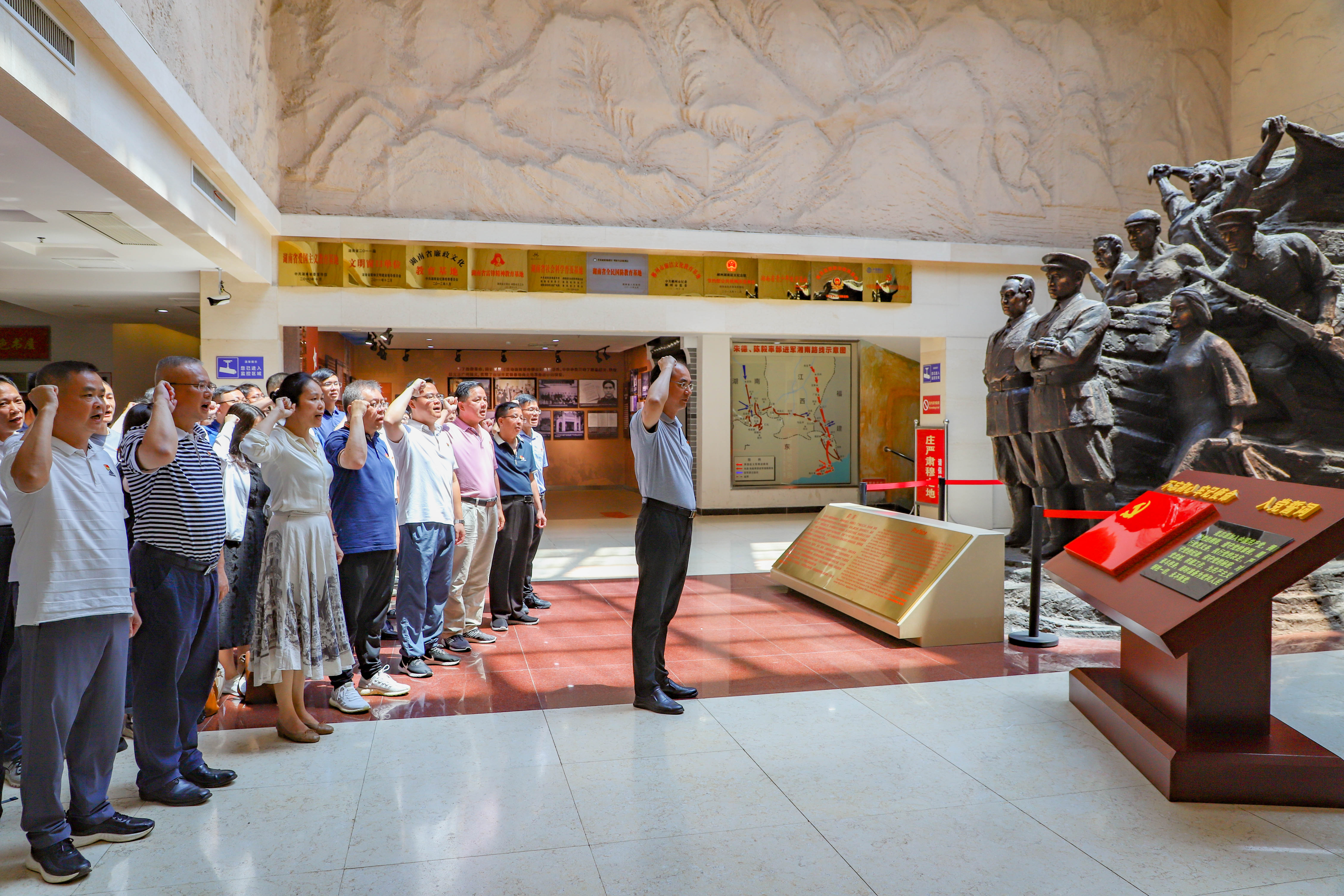 上午,全体教职工怀着对革命先烈无比崇敬的心情,来到湖南省郴州市参观湘南起义纪念馆。大家一边观看纪念馆内陈列的历史照片、文物展品,一边聆听讲解员述说湘南起义的历史全过程,走进那段艰苦卓绝的革命岁月,深切缅怀革命先烈的英雄事迹。党员同志在常务副校(院)长雷能福的领誓下,面向党旗,举起右拳,重温入党誓词。通过参观湘南起义纪念馆和重温入党誓词,大家从朱德等一辈革命家身上感受到了不怕牺牲、浴血奋战的英雄气概,坚定了传承红色基因、汲取奋进力量的信心和决心。