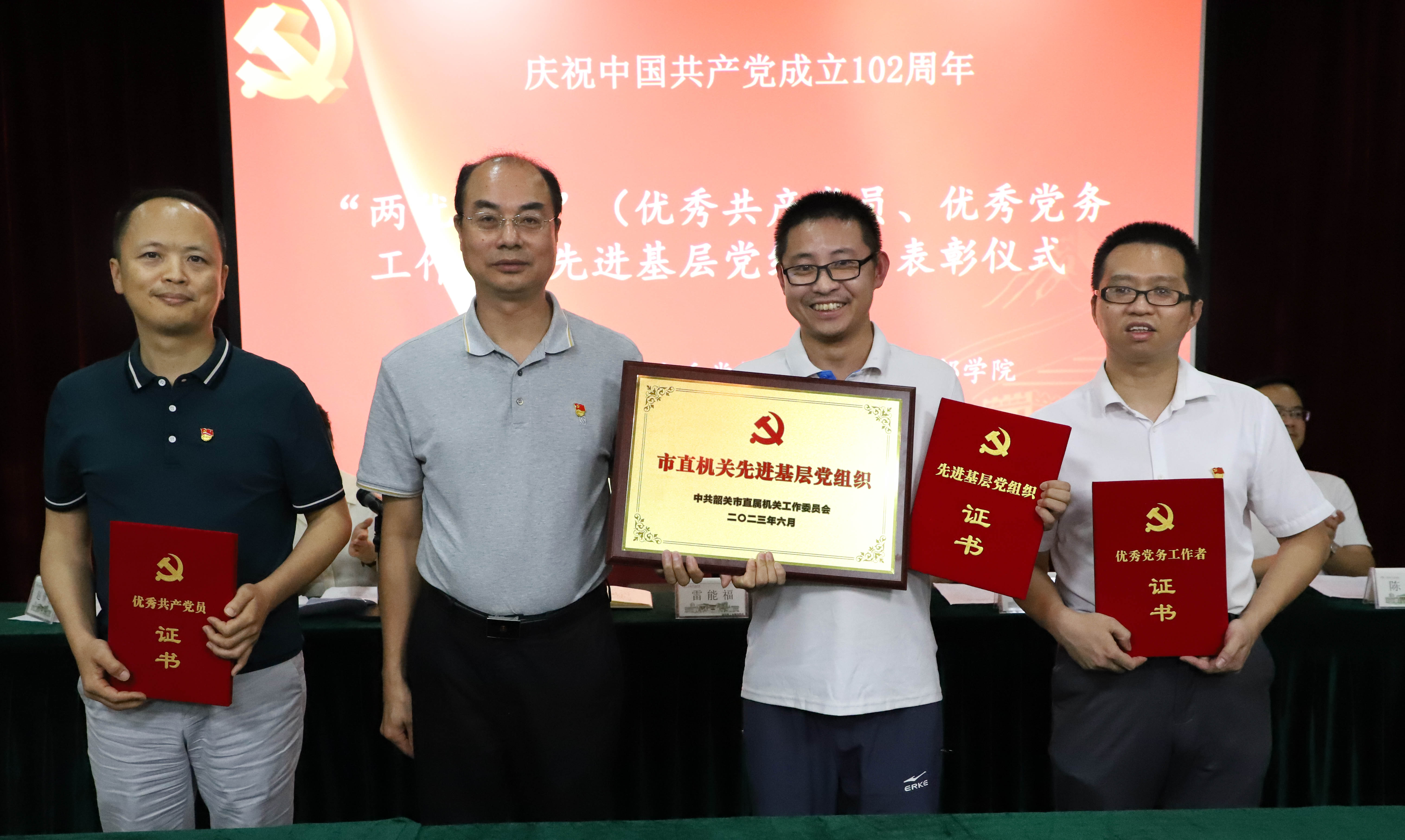在全党深入学习贯彻习近平新时代中国特色社会主义思想和党的二十大精神,隆重庆祝中国共产党成立102周年之际,2023年7月2日中共韶关市委党校、广东南岭干部学院以主题党日的活动形式,诚挚祝福党的生日,通过开展党性教育,进一步深化党员理想信念教育、对党忠诚教育和政治机关意识教育,凝聚全校教职工踔厉奋发、勇毅前行,奋力推动校(院)高质量发展的精神力量。
