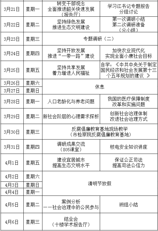 2016年第一期处级班教学日程表