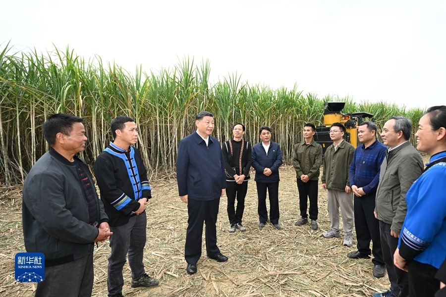 12月14日至15日,中共中央总书记、国家主席、中央军委主席习近平在广西考察。这是14日下午,习近平在来宾市国家现代农业产业园黄安优质“双高”糖料蔗基地考察。新华社记者 王晔 摄